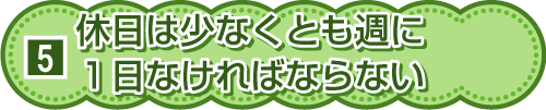 ◆休日は、毎週すくなくとも一回以上、4週で4日以上の休日があたえられなければならないとなっています。(労働基準法第35条)