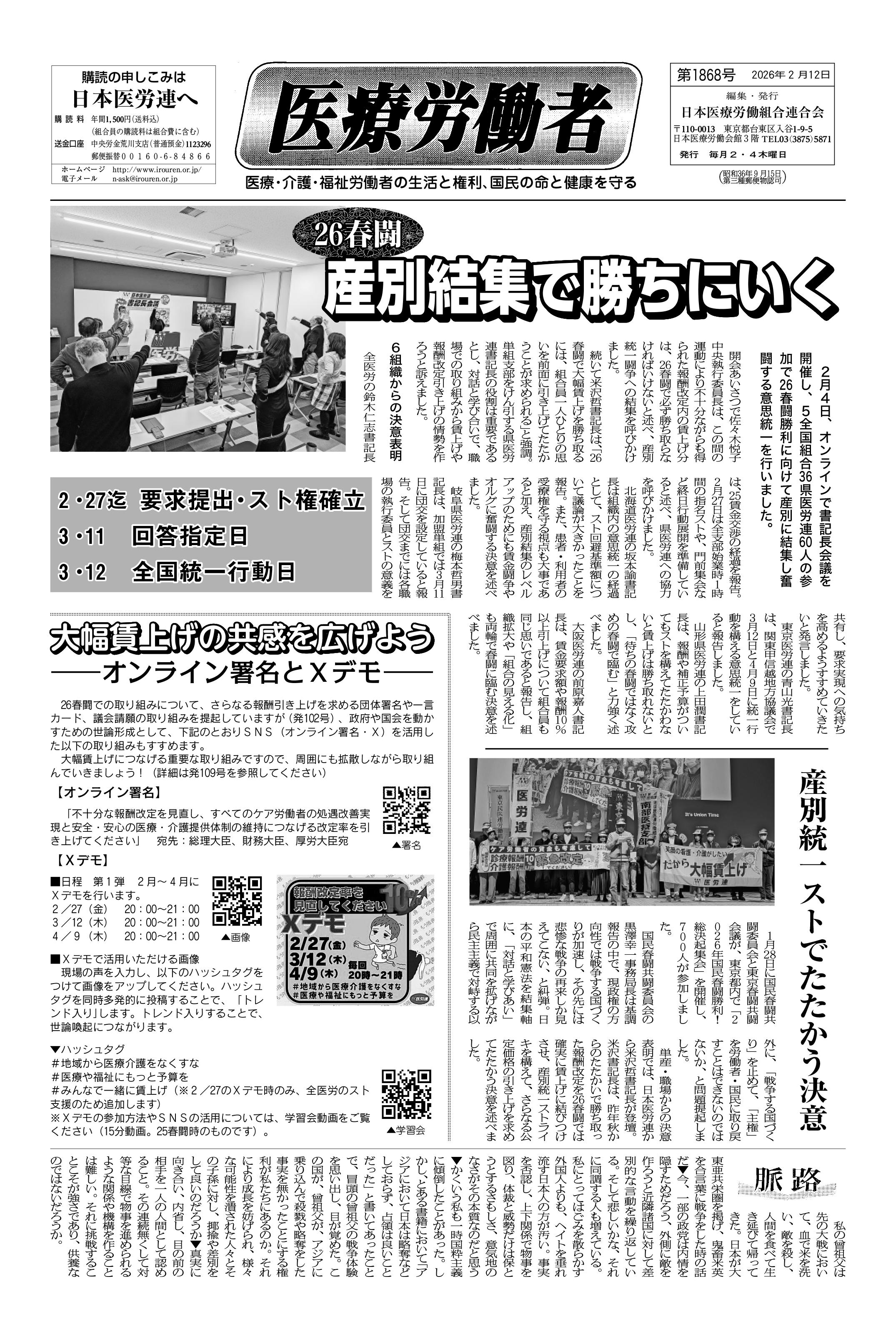 本サイト掲載の記事、写真等の無断転載を禁じます。 Copyright 2012 Japan Federation of Medical Worker's Unions, All rights reserved.